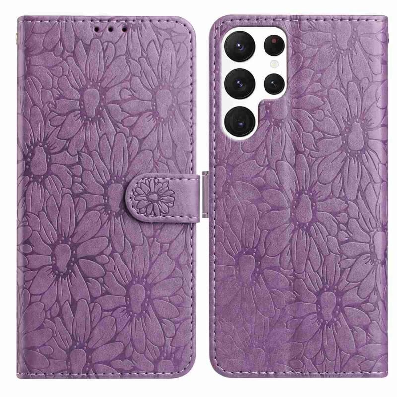 Θήκη τηλεφώνου Samsung Galaxy S22 Ultra 5G από δέρμα με ανάγλυφο σχέδιο μαργαρίτας (ανοιχτό μωβ)