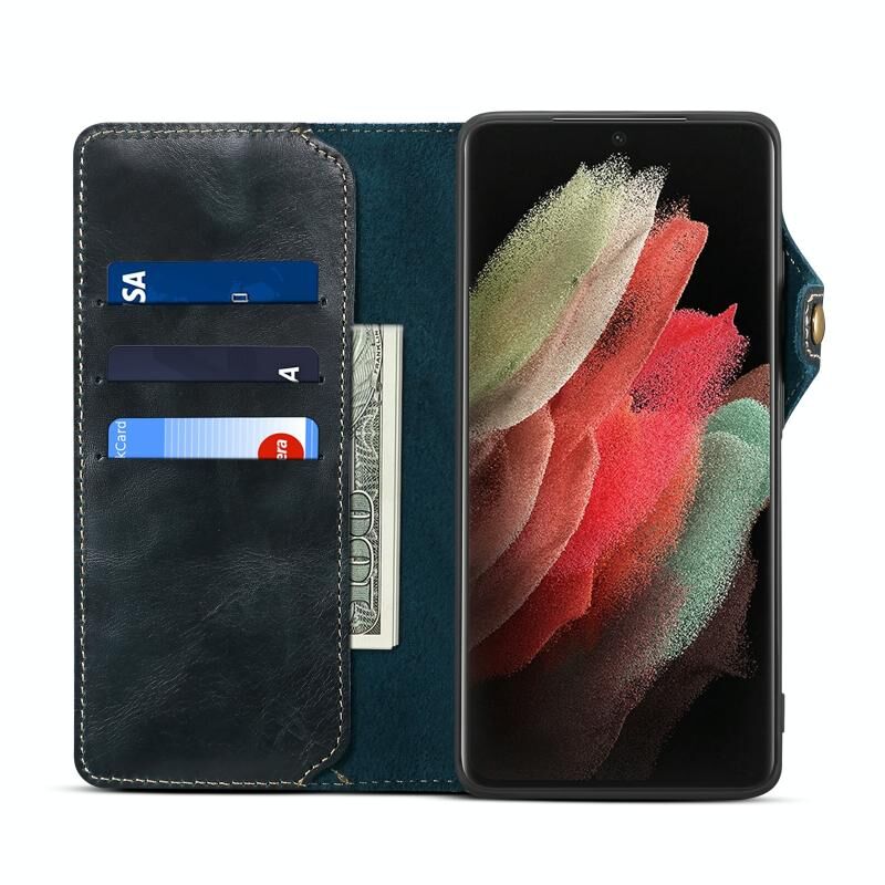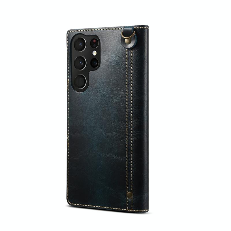 Θήκη για Samsung Galaxy S22 Ultra 5G από γνήσιο δέρμα αγελάδας με κερί λαδιού Denior, με μαγνητικό κούμπωμα (Κόκκινο σκούρο) (Denior)