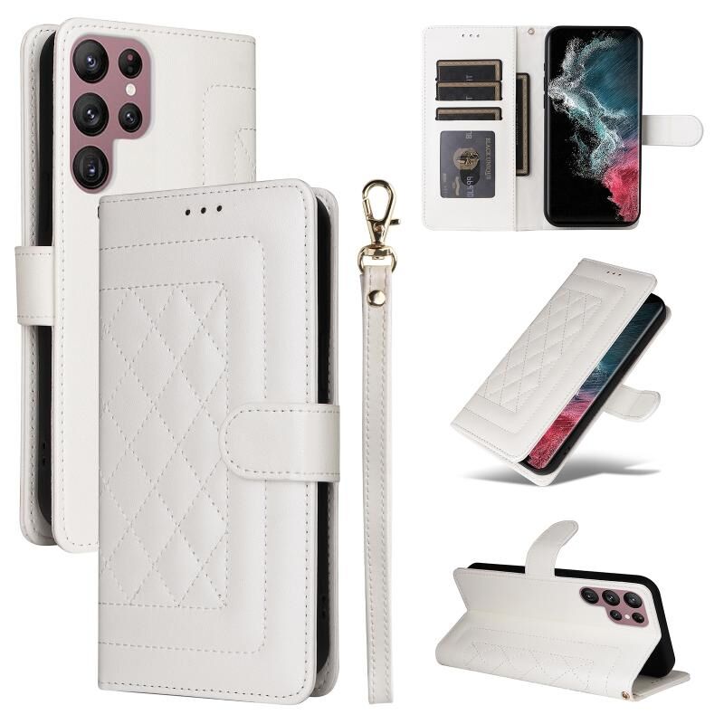 Για Samsung Galaxy S22 Ultra 5G Diamond Lattice δέρμα Flip υπόθεση τηλεφώνου (λευκό)
