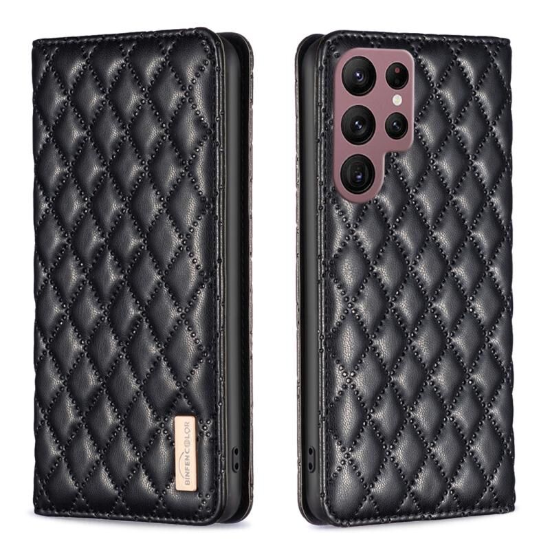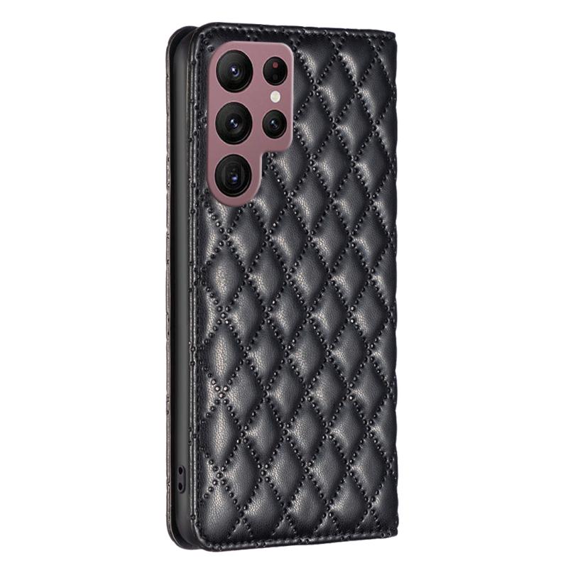 Θήκη τηλεφώνου Samsung Galaxy S22 Ultra 5G Diamond Lattice Magnetic Leather Flip (Μαύρο)