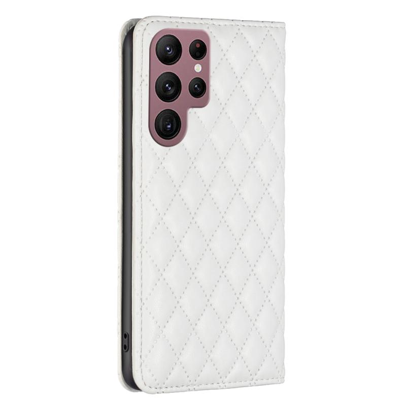 Θήκη τηλεφώνου Samsung Galaxy S22 Ultra 5G Diamond Lattice Magnetic Leather Flip (Μαύρο)