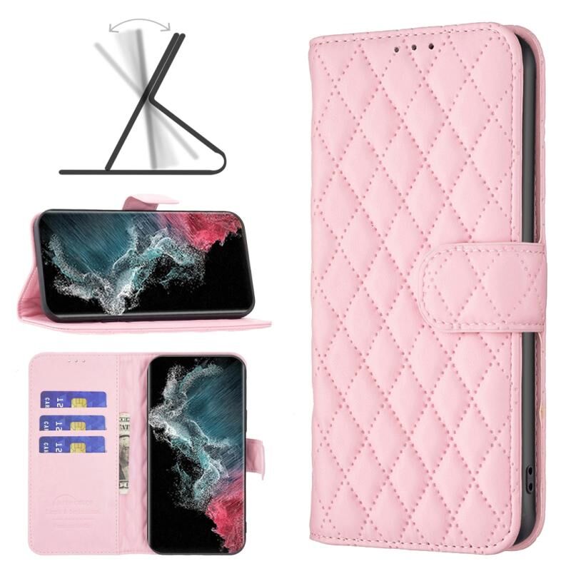 Για Samsung Galaxy S22 Ultra 5G Diamond Lattice πορτοφόλι δέρμα Flip υπόθεση τηλεφώνου (ροζ)