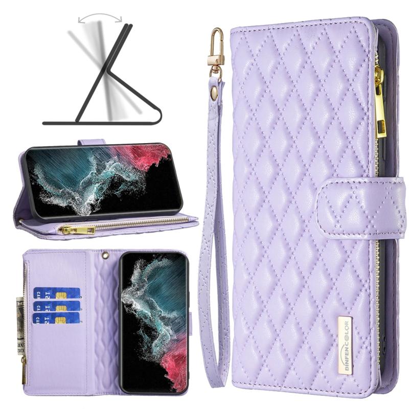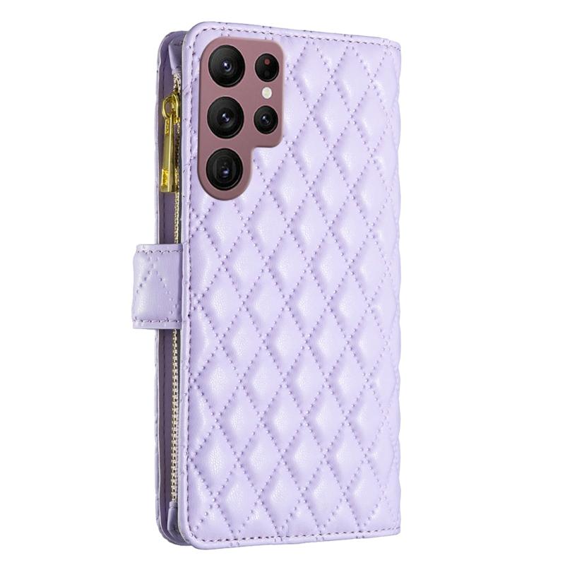 Θήκη τηλεφώνου Samsung Galaxy S22 Ultra 5G, Δερμάτινη θήκη τύπου πορτοφολιού με φερμουάρ και σχέδιο διαμαντόπετρας (Μαύρο)