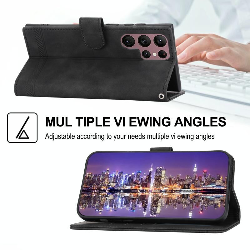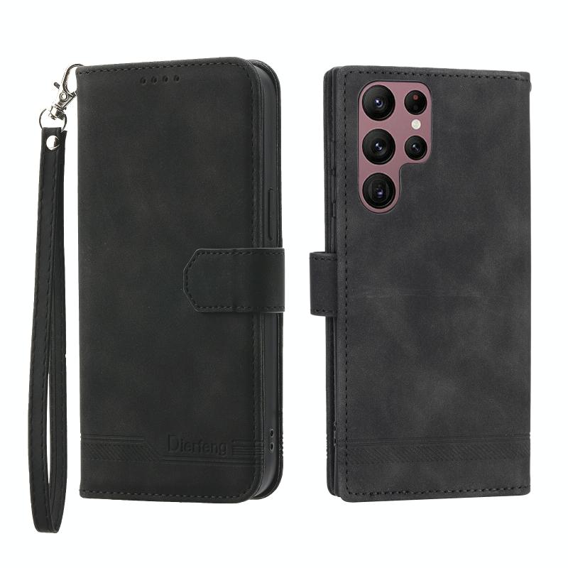 Θήκη κινητού τηλεφώνου Dierfeng Dream Line TPU + PU δέρμα για Samsung Galaxy S22 Ultra 5G (Μαύρο)