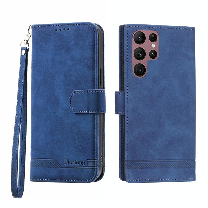 Θήκη κινητού τηλεφώνου Dierfeng Dream Line TPU + PU δέρμα για Samsung Galaxy S22 Ultra 5G (Μαύρο)
