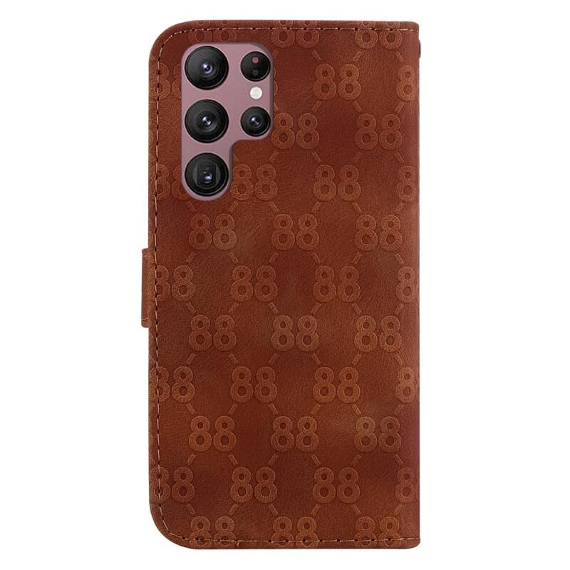Θήκη τηλεφώνου Samsung Galaxy S22 Ultra 5G Δερμάτινη με ανάγλυφο διπλό σχέδιο σε σχήμα 8 (Μωβ)