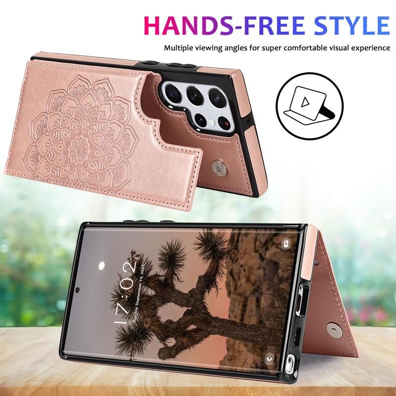 Για Samsung Galaxy S22 Ultra 5G Διπλή πόρπη Mandala PU + PU υπόθεση τηλεφώνου (ροζ χρυσό)