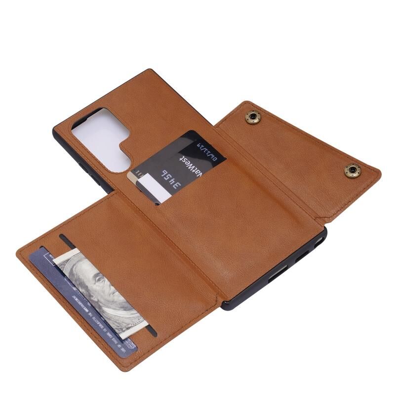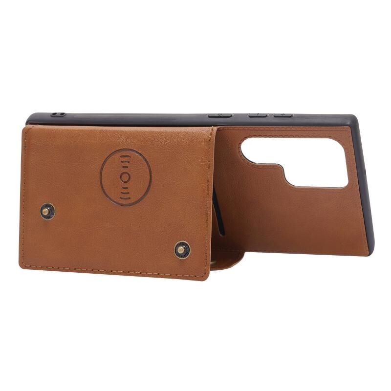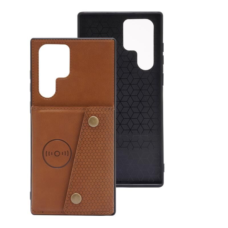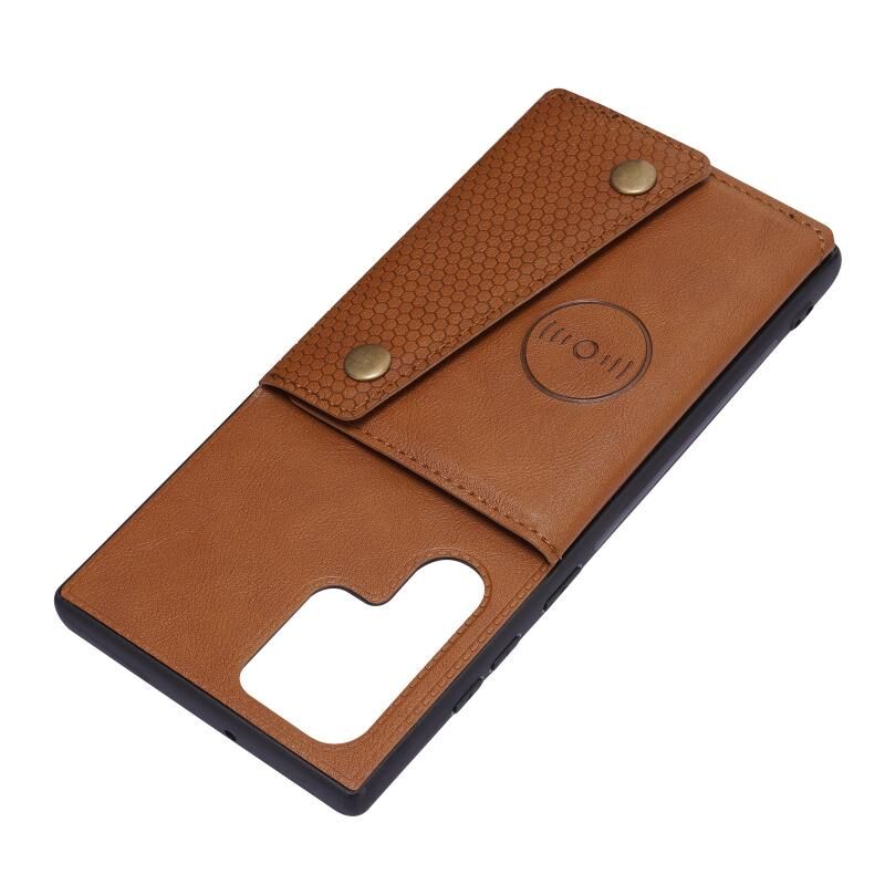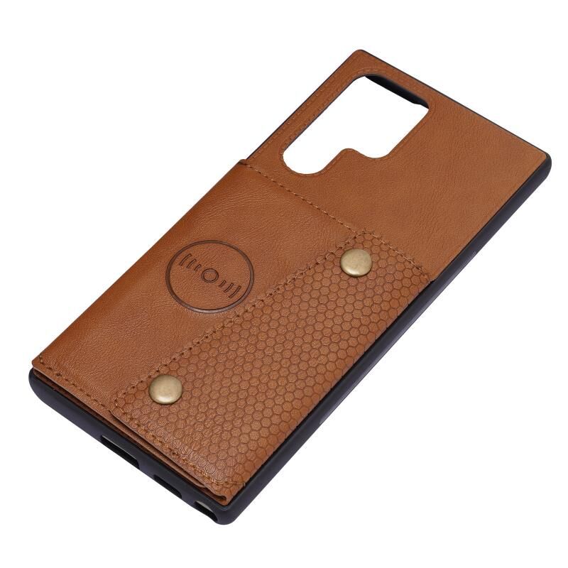 Για Samsung Galaxy S22 Ultra 5G Διπλή πόρπη PU + TPU μαγνητική θήκη τηλεφώνου (καφέ)