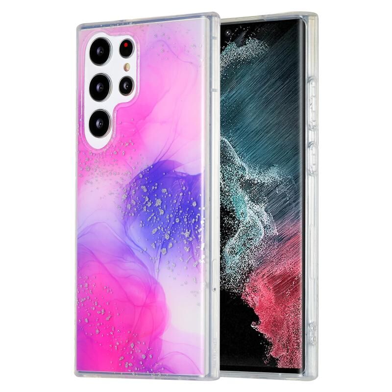 Θήκη τηλεφώνου Samsung Galaxy S22 Ultra 5G με σχέδιο μάρμαρου IMD διπλής όψης (Μωβ με λεκέδες)