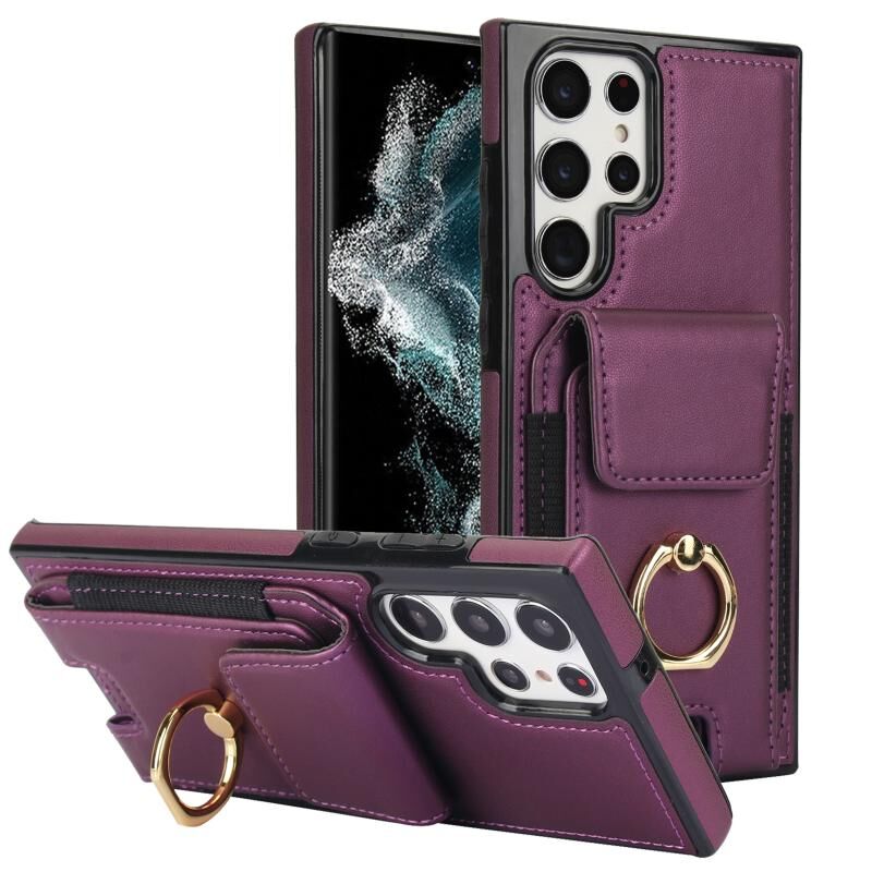 Για Samsung Galaxy S22 Ultra 5G Ελαστική κάρτα τσάντα δαχτυλίδι κάτοχος θήκη τηλεφώνου (μωβ)