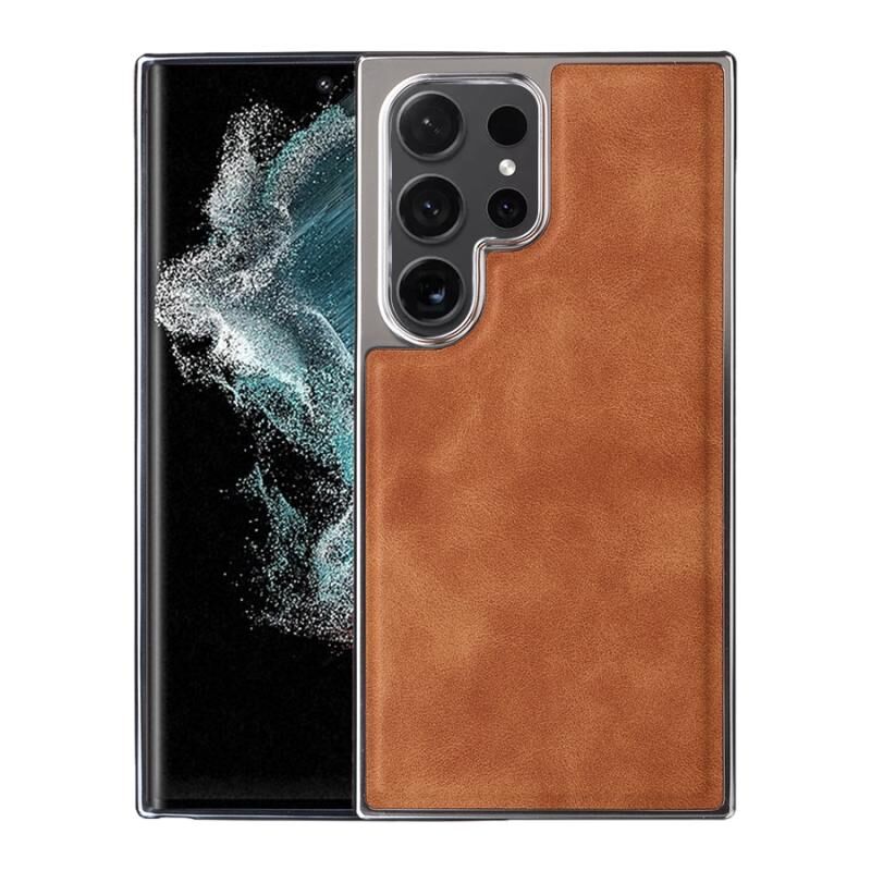 For Samsung Galaxy S22 Ultra 5G Electroplated Side PU Hybrid TPU MagSafe Phone Case(Brown)