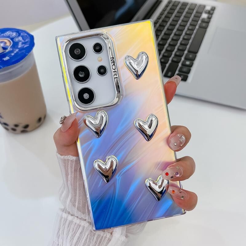 Θήκη τηλεφώνου TPU με λέιζερ 5 καρδιών και ηλεκτρολυτική επίστρωση για Samsung Galaxy S22 Ultra 5G (νήμα φτερού)