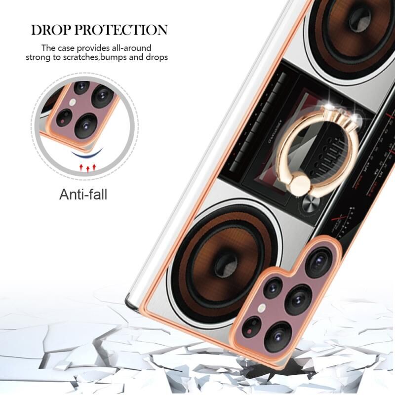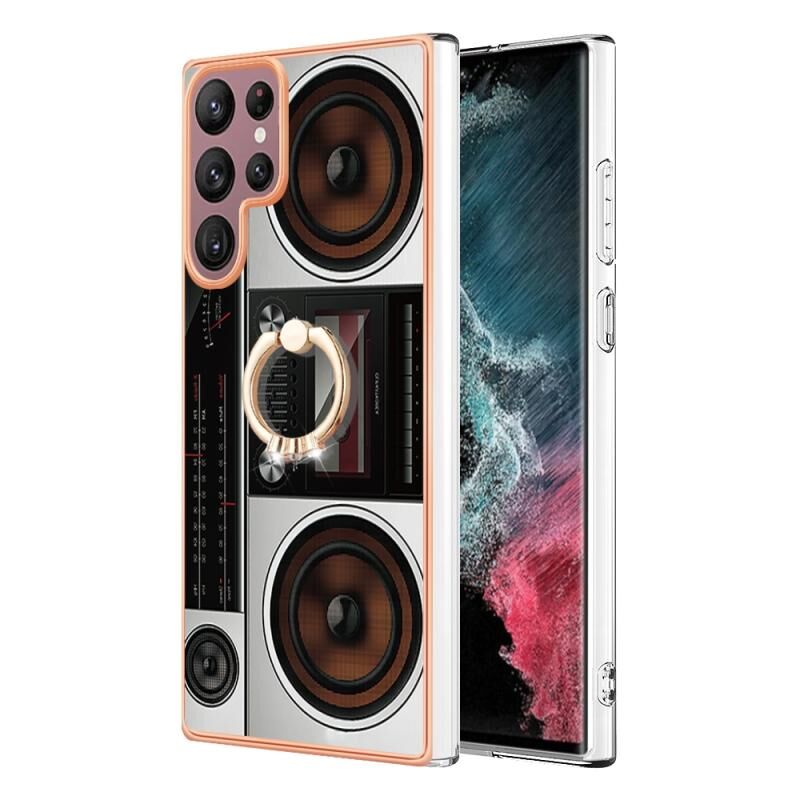 Θήκη τηλεφώνου με δακτύλιο στήριξης και ηλεκτρολυτική επιμετάλλωση διπλής όψης IMD για Samsung Galaxy S22 Ultra 5G (Ρετρό Ραδιόφωνο)
