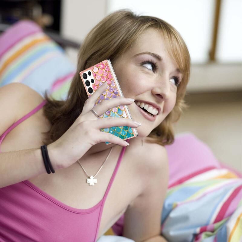 Θήκη τηλεφώνου Samsung Galaxy S22 Ultra 5G με ηλεκτρολυτική επιμετάλλωση IMD TPU (Πολύχρωμες Λέπια)