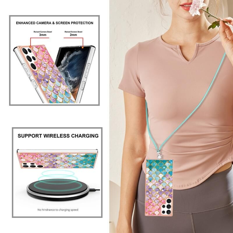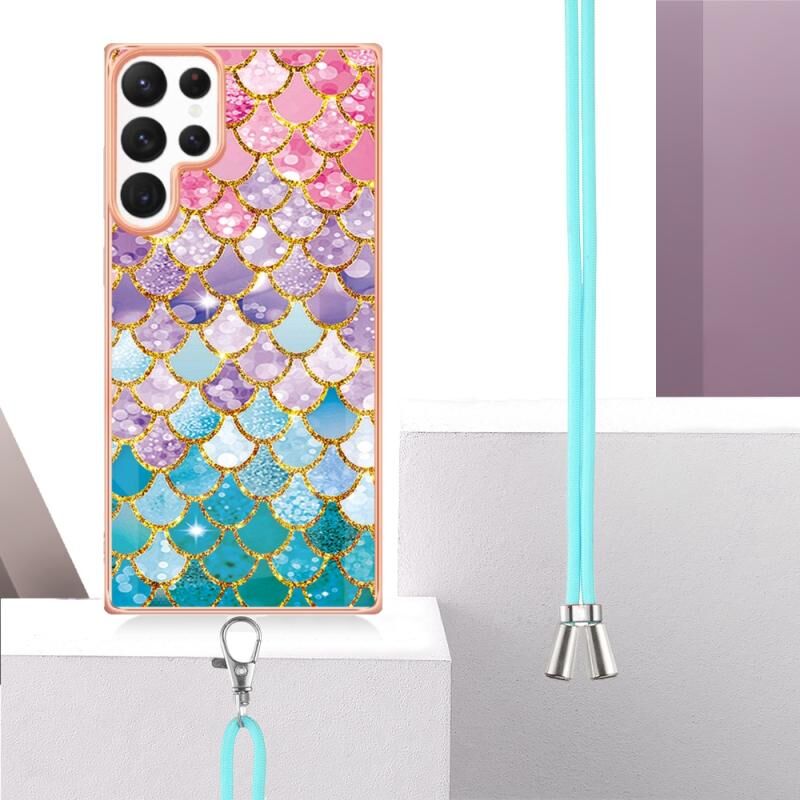 Θήκη κινητού τηλεφώνου Samsung Galaxy S22 Ultra 5G με επιμετάλλωση IMD TPU με κορδόνι (Πολύχρωμες Λέπια)