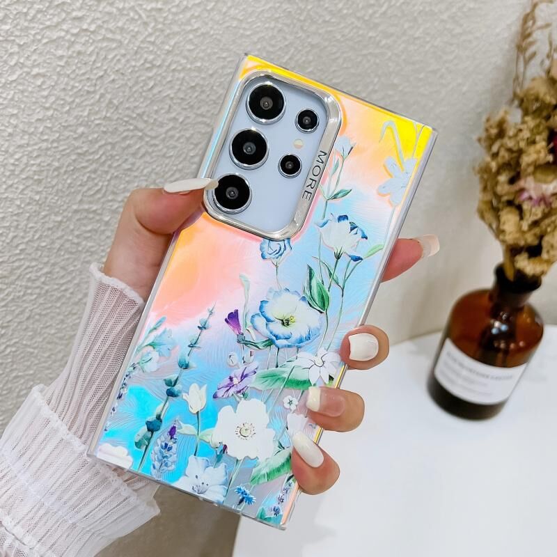 Θήκη τηλεφώνου TPU με ηλεκτρολυτική επίστρωση και υφή λουλουδιού λέιζερ για Samsung Galaxy S22 Ultra 5G (Λευκό Λουλούδι AH10)
