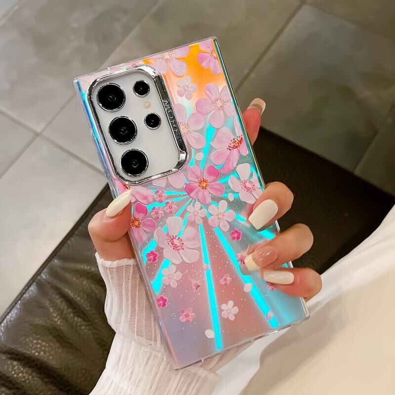 Θήκη τηλεφώνου TPU με ηλεκτρολυτική επίστρωση και υφή λουλουδιού λέιζερ για Samsung Galaxy S22 Ultra 5G (Λευκό Λουλούδι AH10)