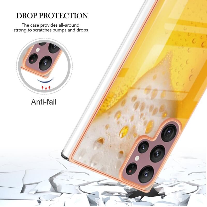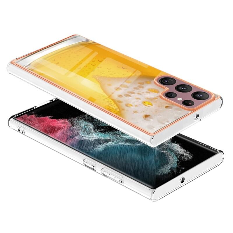 Θήκη τηλεφώνου για Samsung Galaxy S22 Ultra 5G με ηλεκτρολυτική μαρμάρινη όψη IMD διπλής όψης (Draft Beer)