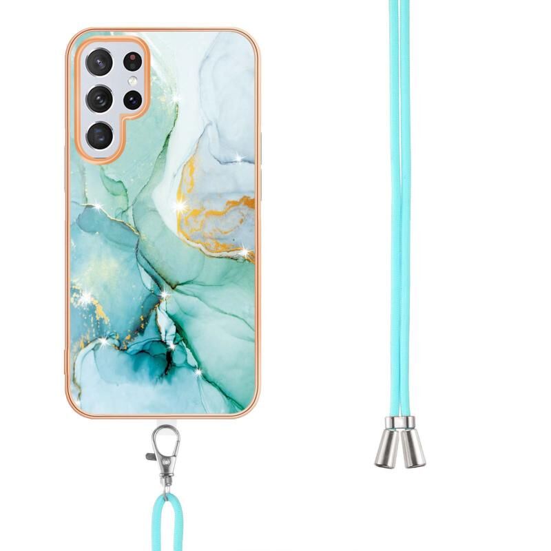 Θήκη κινητού τηλεφώνου Samsung Galaxy S22 Ultra 5G με επιμετάλλωση, σχέδιο μάρμαρου IMD, από TPU με κορδόνι (Μωβ 001)