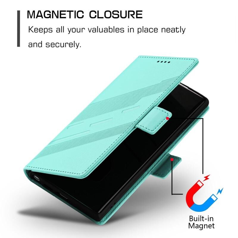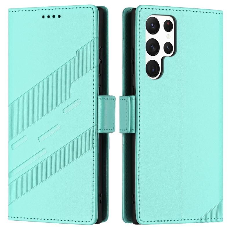 For Samsung Galaxy S22 Ultra 5G Embossed Multi-functional Side Suction Wallet Retro Leather Phone Case(Mint Green)