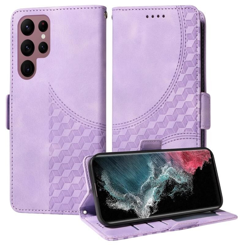 Για Samsung Galaxy S22 Ultra 5G ανάγλυφο ρόμβος Starry δερμάτινη θήκη τηλεφώνου (μωβ)