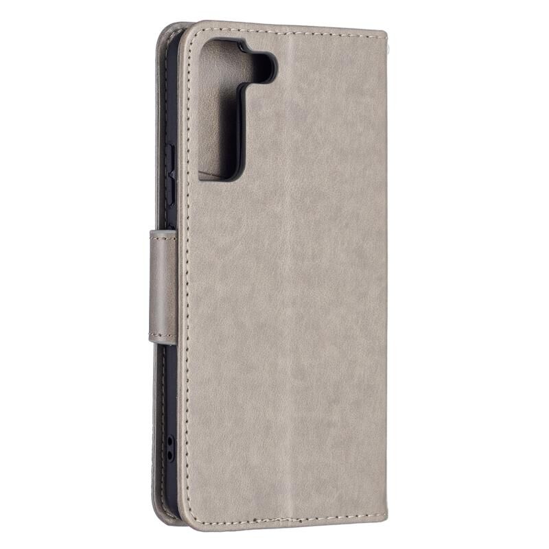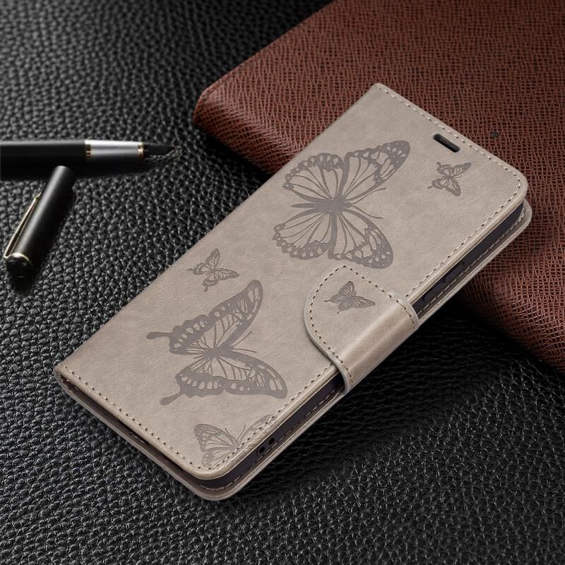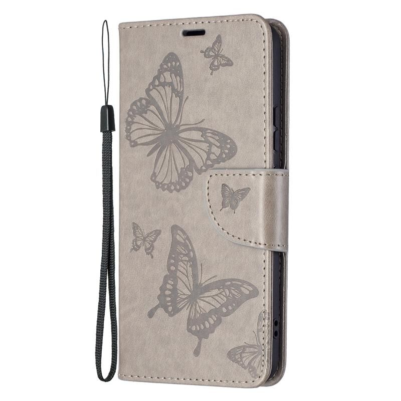 Θήκη τηλεφώνου δερμάτινη με ανάγλυφο σχέδιο δύο πεταλούδων για Samsung Galaxy S22 Ultra 5G, με βάση στήριξης, θήκη για κάρτες, πορτοφόλι και λουρί (Μωβ)