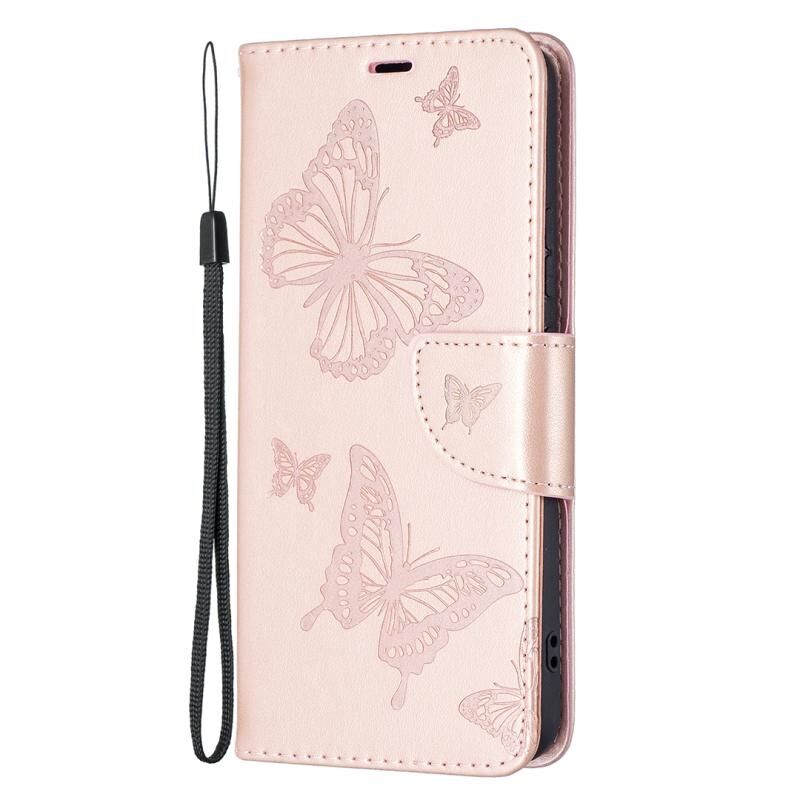Θήκη τηλεφώνου δερμάτινη με ανάγλυφο σχέδιο δύο πεταλούδων για Samsung Galaxy S22 Ultra 5G, με βάση στήριξης, θήκη για κάρτες, πορτοφόλι και λουρί (Μωβ)