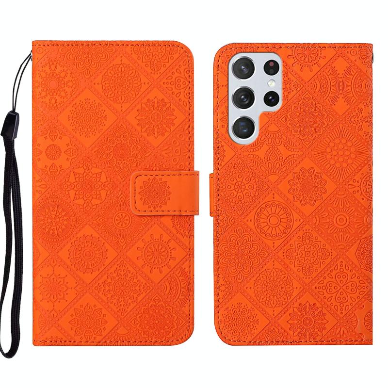 Θήκη τηλεφώνου δερμάτινη με ανάγλυφο σχέδιο εθνοτικού στυλ για Samsung Galaxy S22 Ultra 5G (Μωβ)
