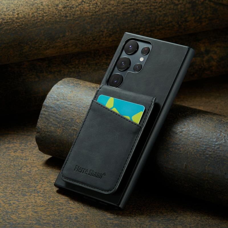 Για Samsung Galaxy S22 Ultra 5G Fierre Shann Crazy Horse Κάτοχος κάρτας κάτοχος πίσω κάλυμμα PU υπόθεση τηλεφώνου (μαύρο) (FIERRE SHANN)
