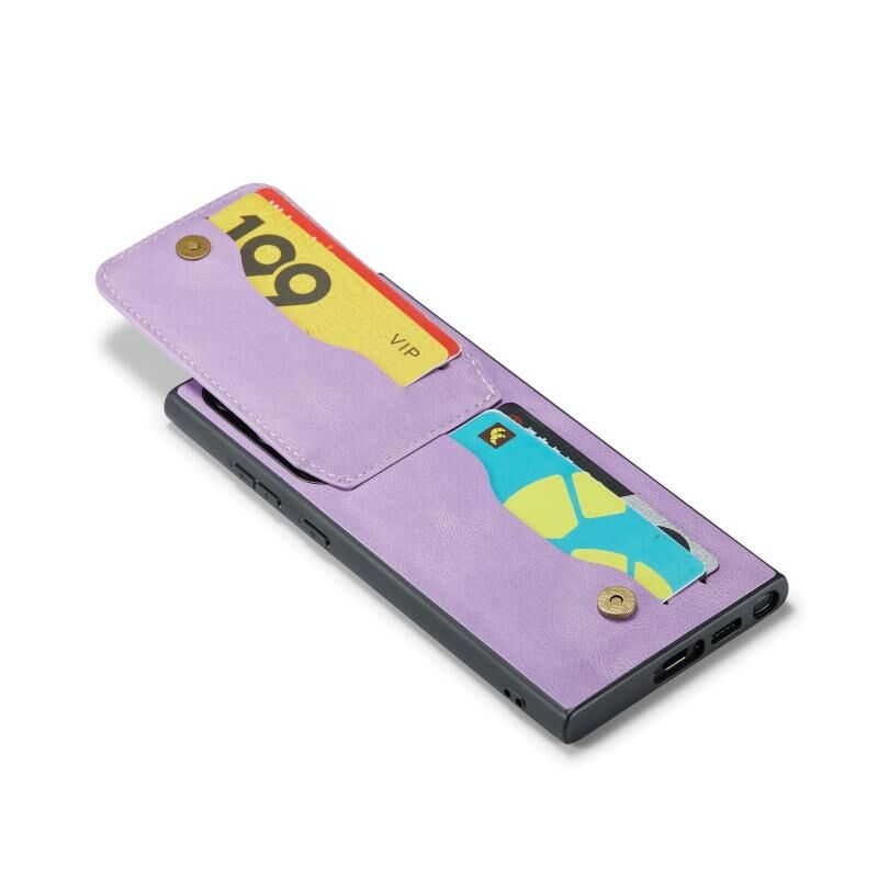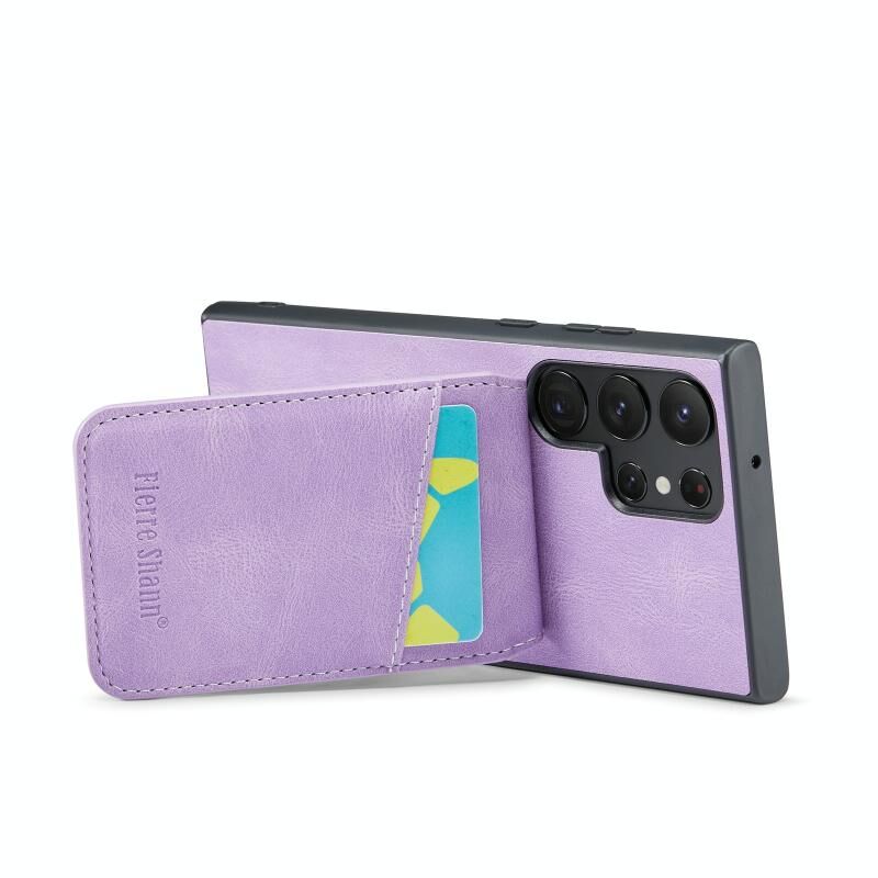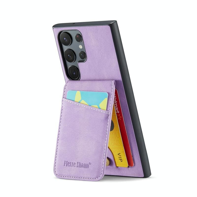 Για Samsung Galaxy S22 Ultra 5G Fierre Shann Crazy Horse Κάτοχος κάρτας κάτοχος πίσω κάλυμμα PU υπόθεση τηλεφώνου (μωβ) (FIERRE SHANN)