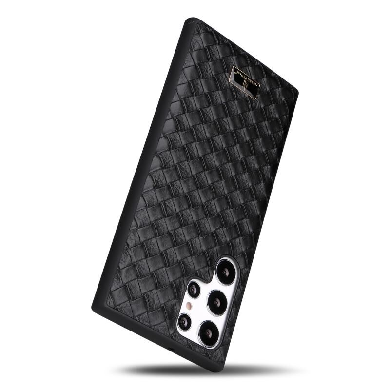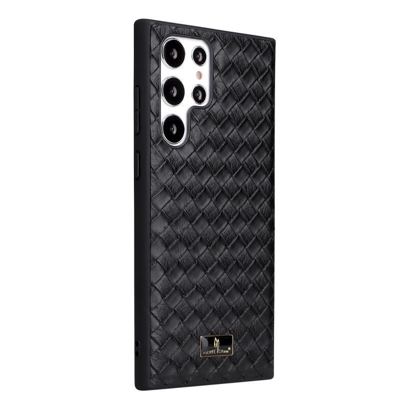 Θήκη κινητού τηλεφώνου Samsung Galaxy S22 Ultra 5G Fierre Shann με υφή δέρματος (Πλεκτό Μαύρο) (FIERRE SHANN)