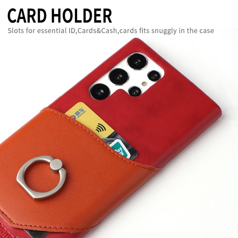 Θήκη κινητού τηλεφώνου από γνήσιο δέρμα με υφή λαδιού και κεριού Fierre Shann για Samsung Galaxy S22 Ultra 5G με περιστρεφόμενη βάση 360 μοιρών & υποδοχή κάρτας (Καφέ) (FIERRE SHANN)