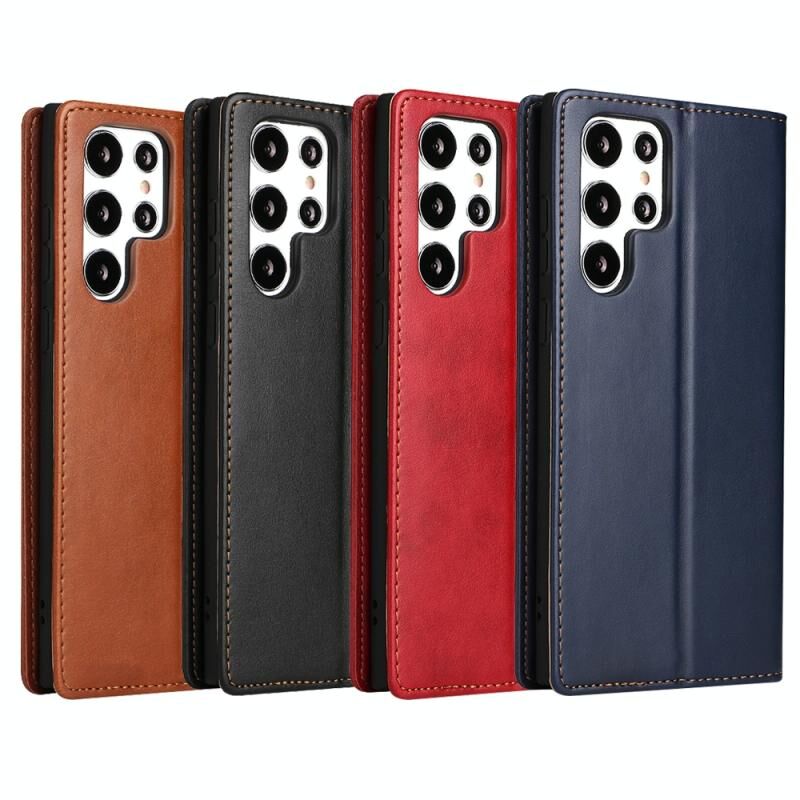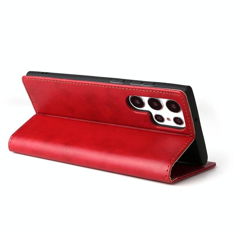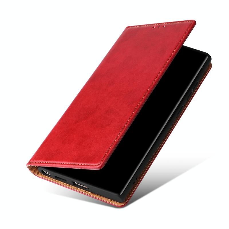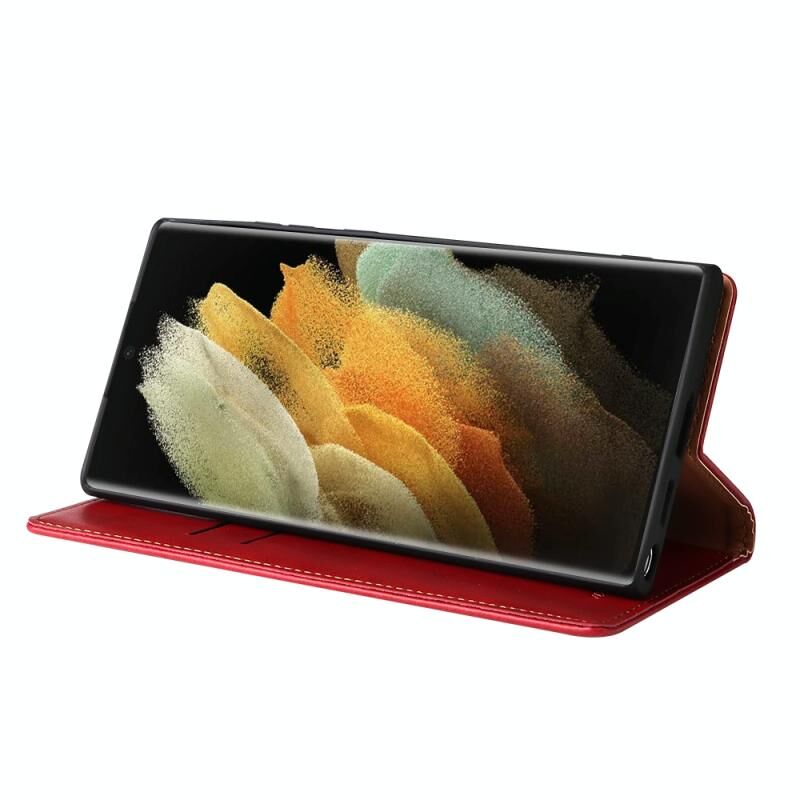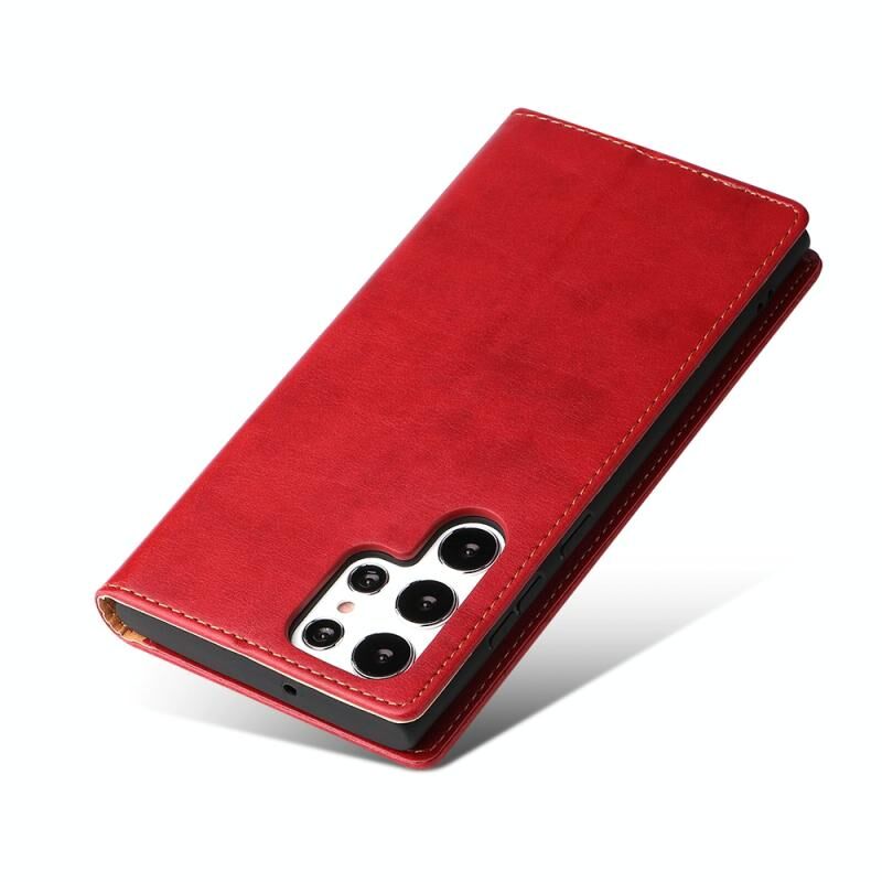 For Samsung Galaxy S22 Ultra 5G Fierre Shann PU Genuine Leather Texture Leather Phone Case(Red) (FIERRE SHANN)