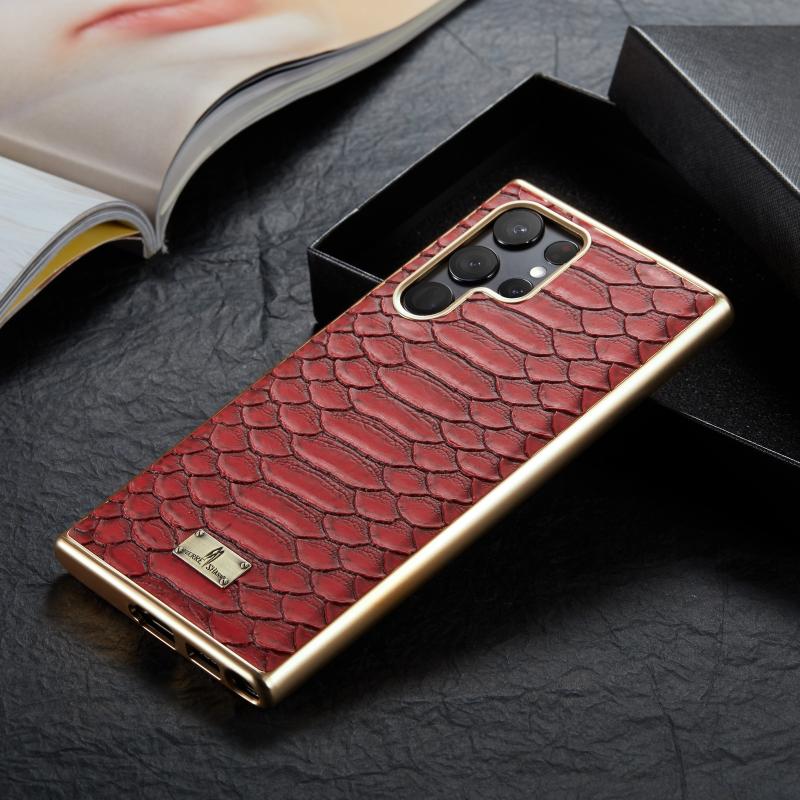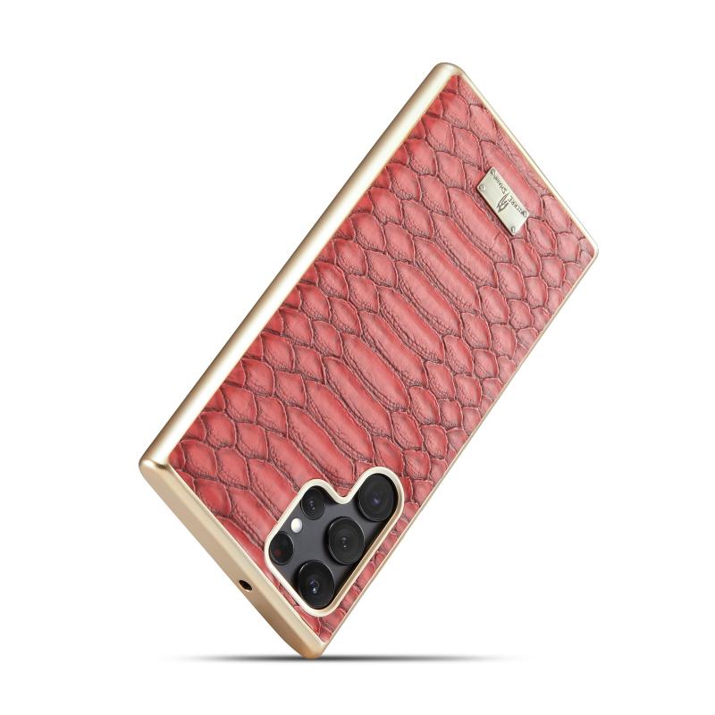 Θήκη κινητού τηλεφώνου Samsung Galaxy S22 Ultra 5G Fierre Shann Python Texture Electroplating PU (Κόκκινη) (FIERRE SHANN)