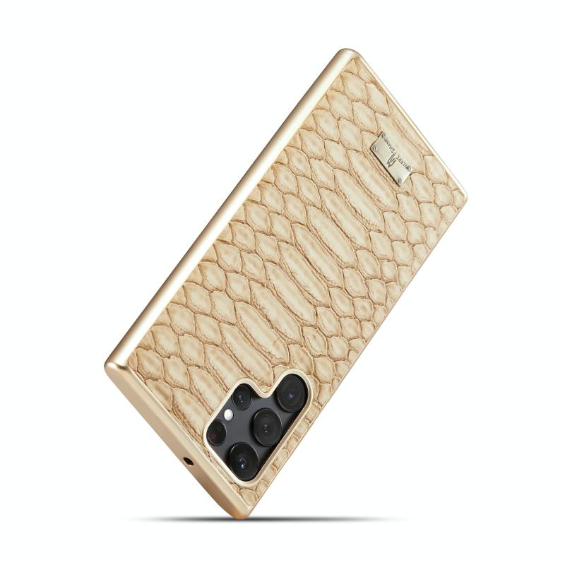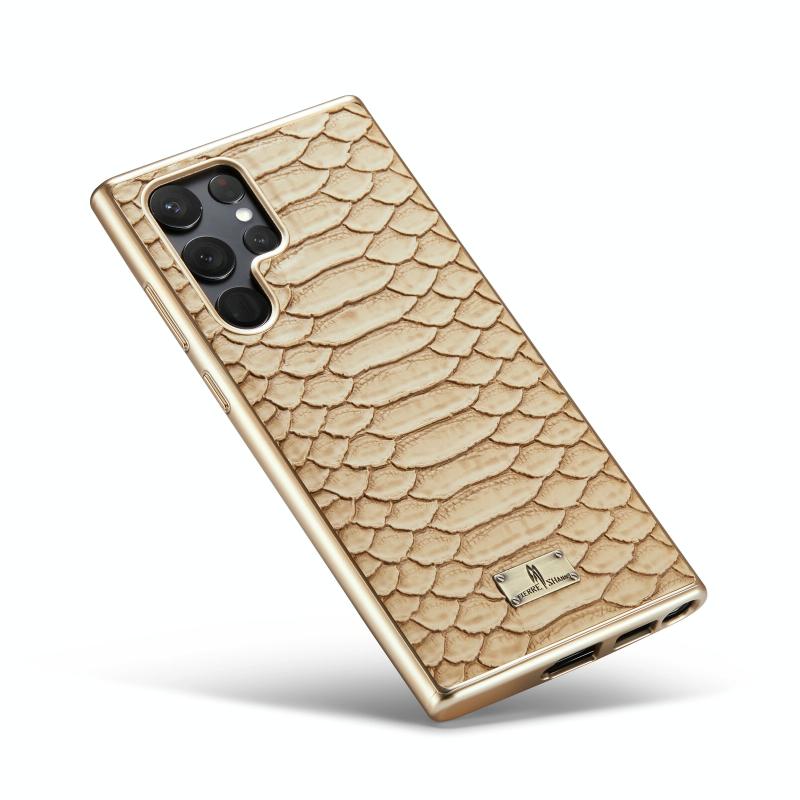 Θήκη κινητού τηλεφώνου Samsung Galaxy S22 Ultra 5G Fierre Shann Python Texture Electroplating PU (Κόκκινη) (FIERRE SHANN)