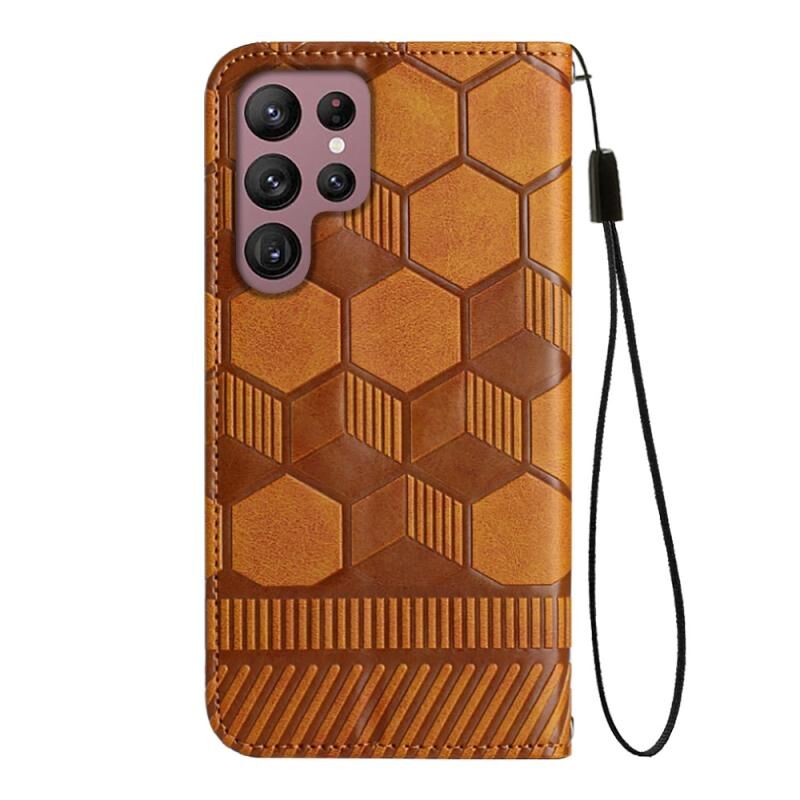 Για Samsung Galaxy S22 Ultra 5G Ποδόσφαιρο υφή μαγνητική δερμάτινη θήκη Flip τηλέφωνο (χακί)