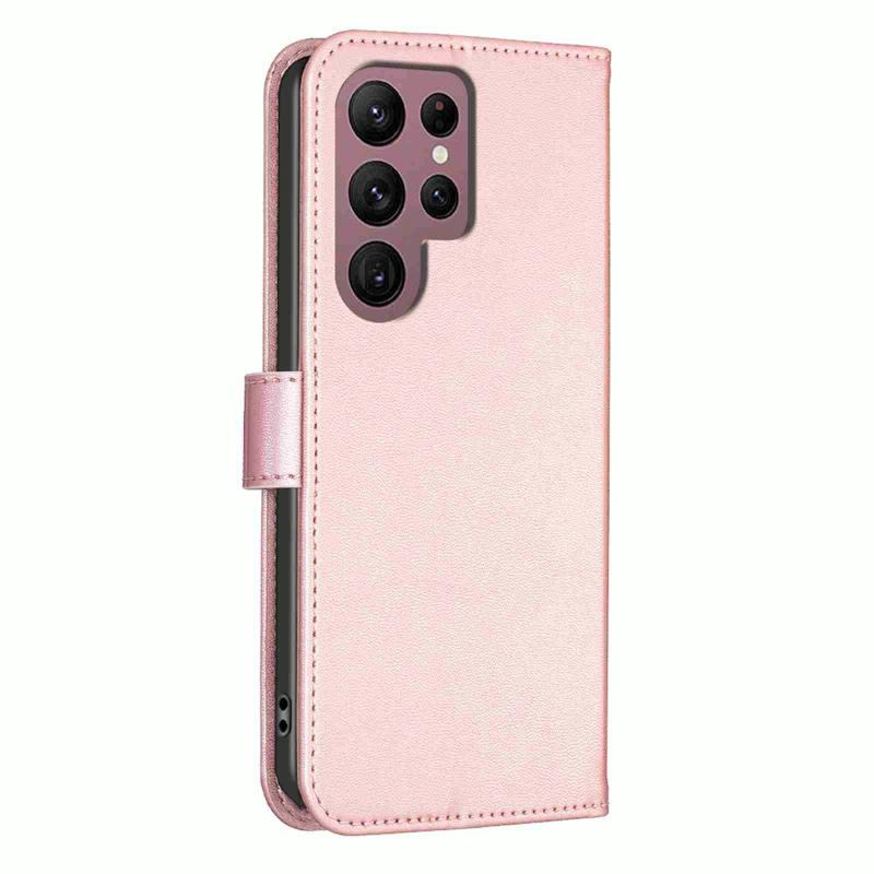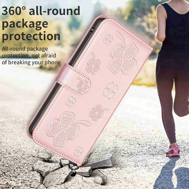 For Samsung Galaxy S22 Ultra 5G Four-leaf Embossed Leather Phone Case(Pink)