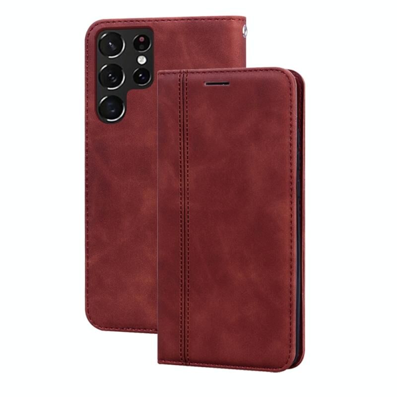 Για Samsung Galaxy S22 Ultra 5G Frosted Business Μαγνητική Flip δερμάτινη θήκη τηλεφώνου (καφέ)