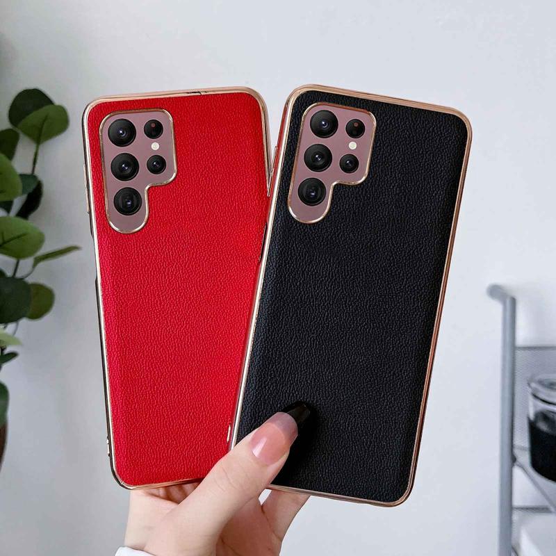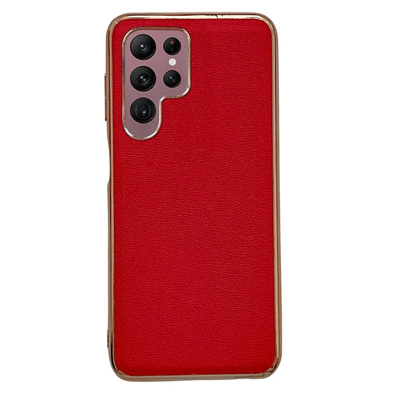 For Samsung Galaxy S22 Ultra 5G Genuine Leather Luolai Series Nano Electroplating Phone Case(Red)