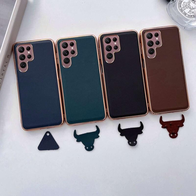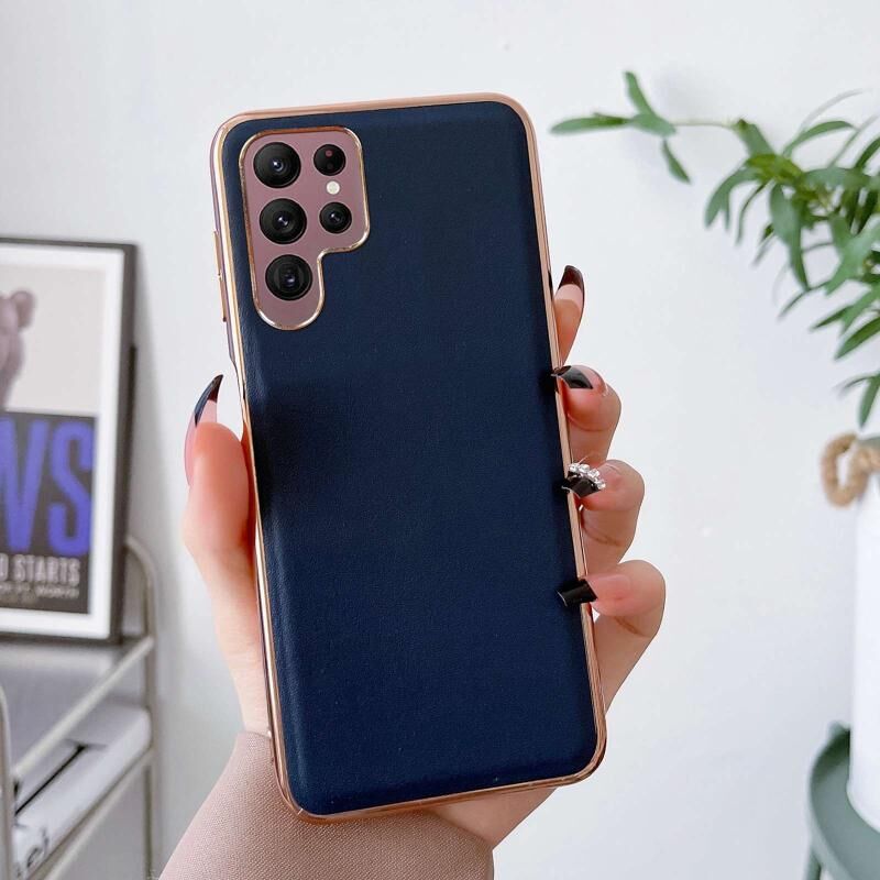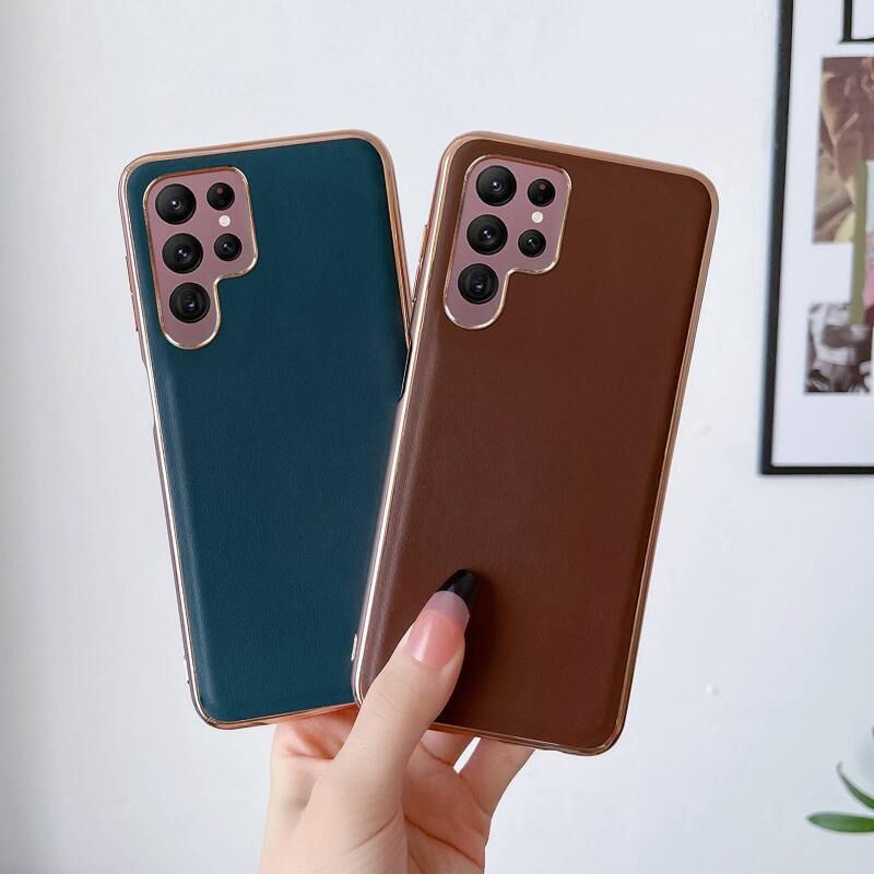 Θήκη τηλεφώνου Samsung Galaxy S22 Ultra 5G από γνήσιο δέρμα, σειρά Xiaoya, νανο-επίχρυση (Μαύρο)
