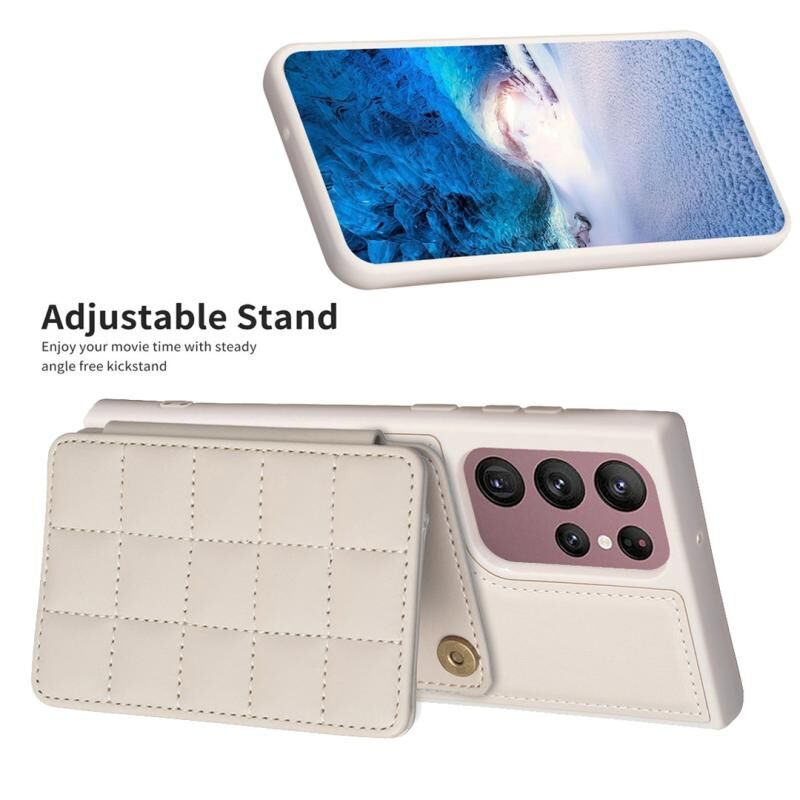 Για Samsung Galaxy S22 Ultra 5G Grid κάρτα Slot κάτοχος υπόθεση τηλέφωνο (Μπεζ)