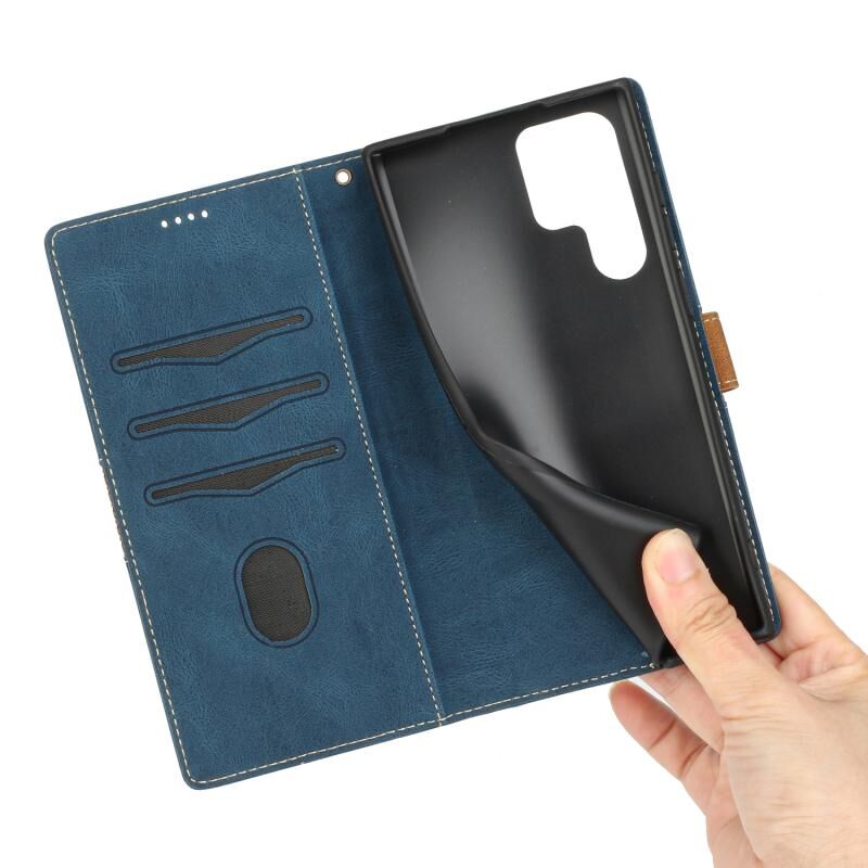Για Samsung Galaxy S22 Ultra 5G Grid Stitching δερμάτινη θήκη τηλεφώνου με κορδόνι (μπλε)