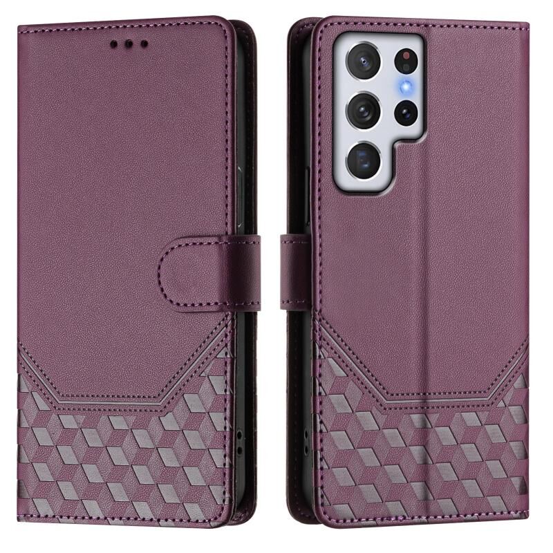 Για Samsung Galaxy S22 Ultra 5G Honeycomb ανάγλυφη RFID δερμάτινη θήκη τηλεφώνου (Violet)
