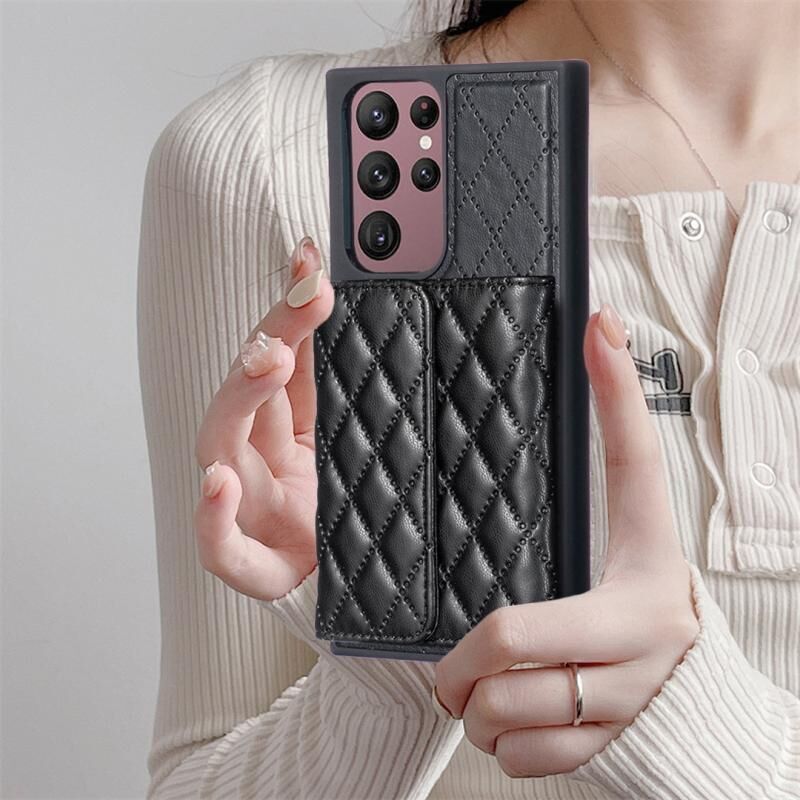 Για Samsung Galaxy S22 Ultra 5G Οριζόντια πορτοφόλι ρομβοειδές δέρμα θήκη τηλεφώνου (Μαύρο)