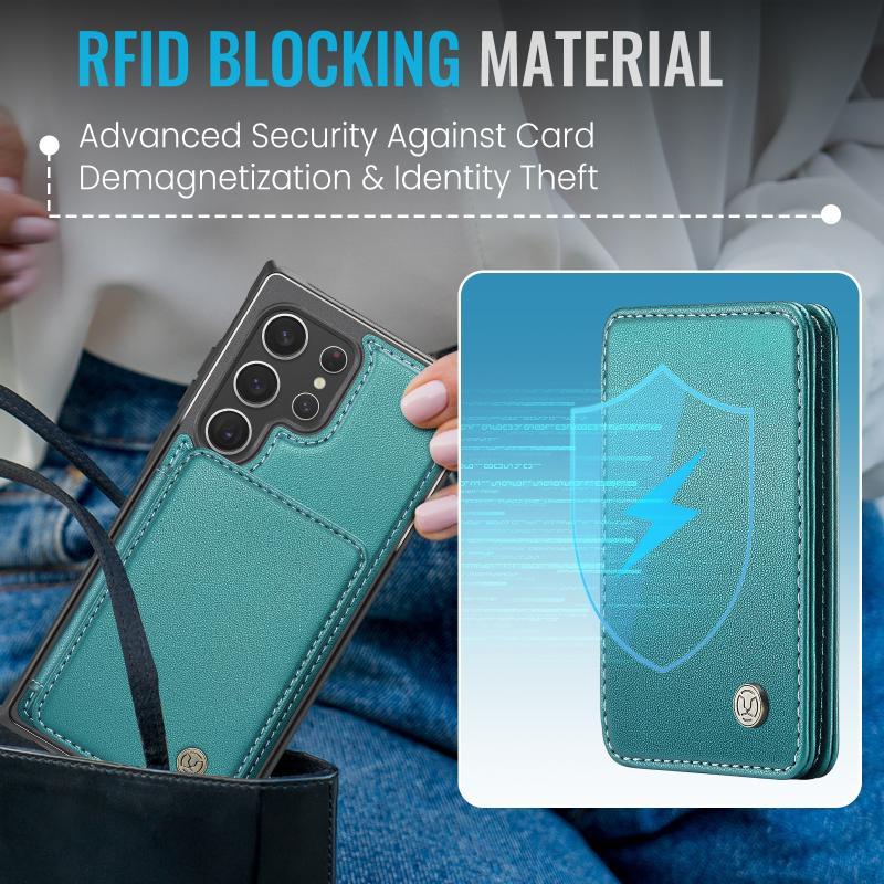 For Samsung Galaxy S22 Ultra 5G JEEHOOD J05 Business Magnetic Style RFID Leather Phone Case(Blue Green) (JEEHOOD)
