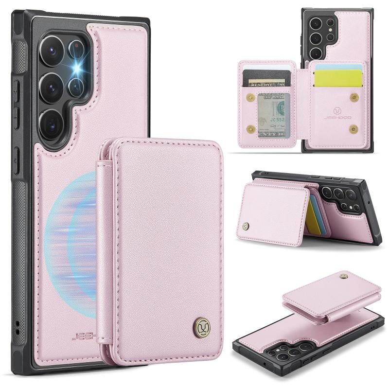 For Samsung Galaxy S22 Ultra 5G JEEHOOD J05 Business Magnetic Style RFID Leather Phone Case(Pink) (JEEHOOD)