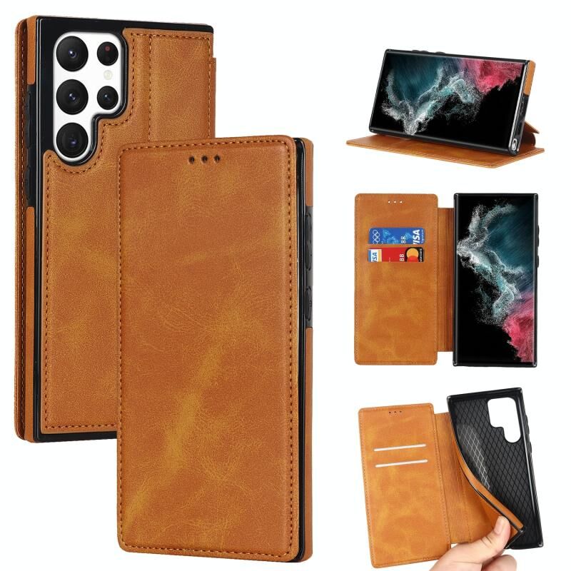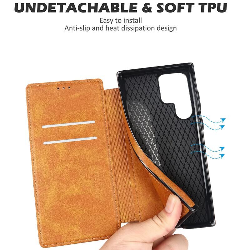 Για Samsung Galaxy S22 Ultra 5G Ιππότης μαγνητική αναρρόφηση δερμάτινη θήκη τηλεφώνου (χακί)
