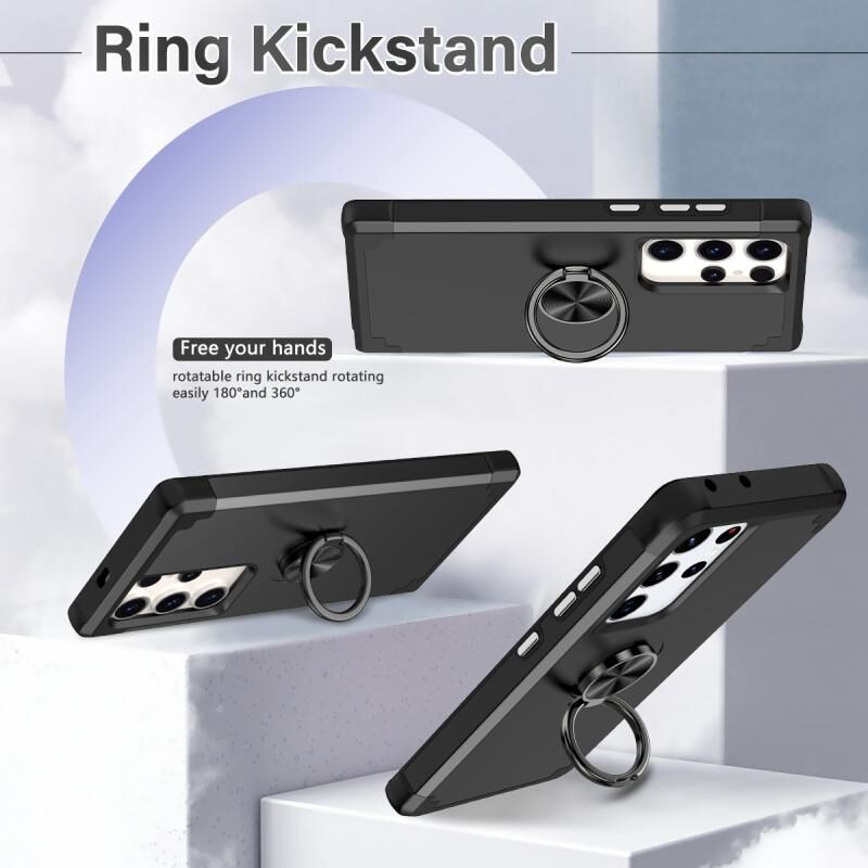 Θήκη κινητού τηλεφώνου με περιστρεφόμενη βάση δακτυλιδιού και μαγνητική υποστήριξη για Samsung Galaxy S22 Ultra 5G (Μέντα Πράσινο)