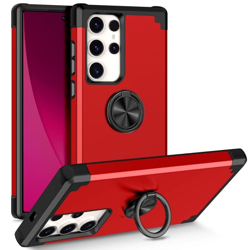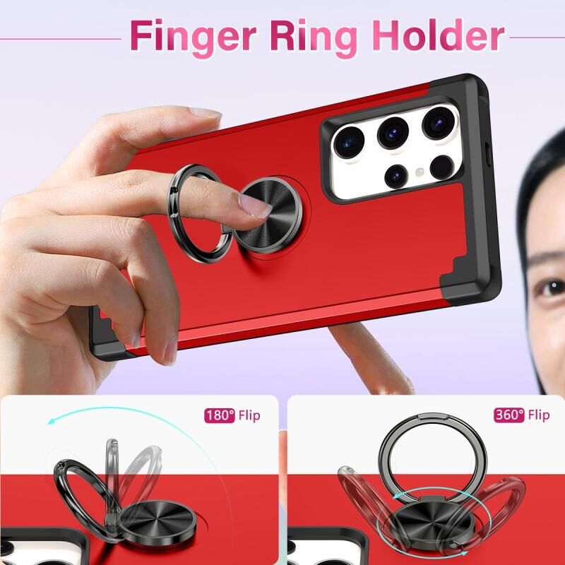 Θήκη κινητού τηλεφώνου με περιστρεφόμενη βάση δακτυλιδιού και μαγνητική υποστήριξη για Samsung Galaxy S22 Ultra 5G (Μέντα Πράσινο)