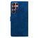 For Samsung Galaxy S22 Ultra 5G Lace Floral Embossed Magnetic Buckle PU Phone Case With Wrist Strap(Blue)